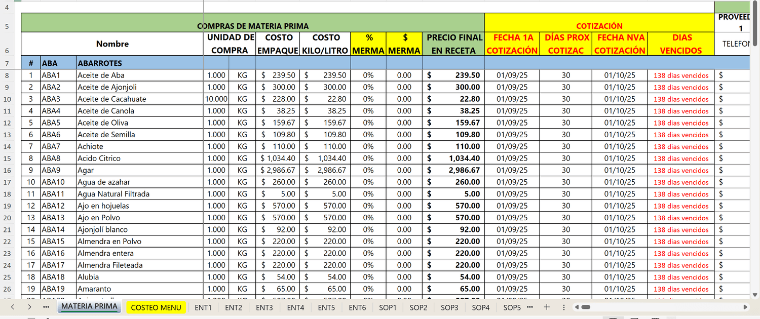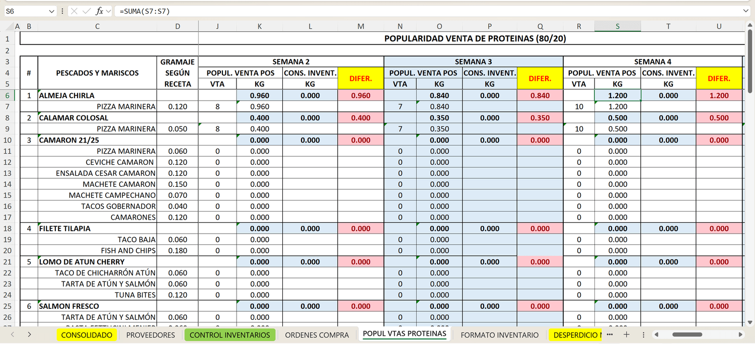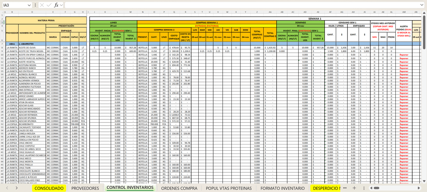 Hacen Compras de M.P. semanal estimadas sin saber cual es el consumo real de cada insumo por semana.