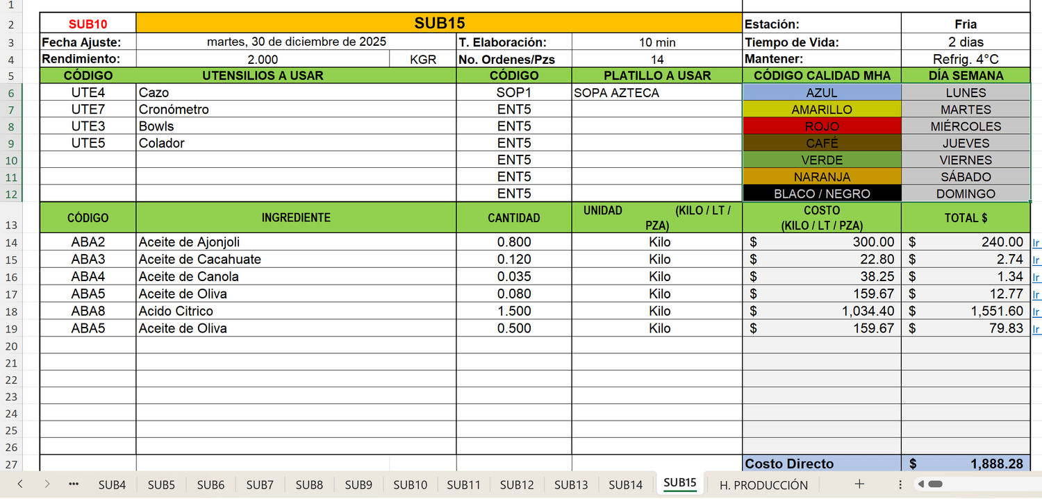 22.-Subreceta estandarizada